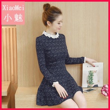韩版2016秋装新款女装修身显瘦娃娃领针织连衣裙长袖女时尚短裙潮