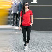 薇点夏装新款时尚短袖套装大码休闲套装女夏季跑步长裤套装两件套