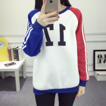 2017春秋季学生卫衣女潮韩版原宿BF风三杠宽松拼色加绒闺蜜装卫衣