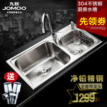 JOMOO九牧 厨房双槽洗菜盆 一体成型304不锈钢水槽02083