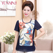 妈妈装夏季短袖雪纺中年人40-50岁上衣大码中老年女装夏装T恤衫