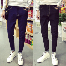 春季男士紧身男裤弹力牛仔裤男生学生加长裤子韩版修身小脚牛子裤