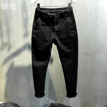 【唯独】秋冬新 休闲西裤休闲裤加厚微跨男裤 抽绳内里抓绒小脚裤