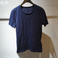 【唯独】17春夏新 浅与 圆领休闲修身男款短袖T恤 轻薄亚麻透气