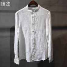 【唯独】17年春夏新 亚麻轻薄修身休闲古风写意男款衬衫 100%亚麻