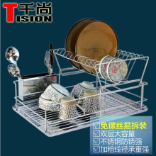 碗筷沥水架 TISION千尚不锈钢置碗架 洗碗架放碗沥水篮 双层碗碟