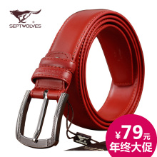 七匹狼女士皮带女款真皮 本命年红腰带婚用 百搭纯牛皮裤带腰带女
