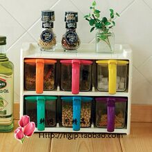 韩国进口正品昌信密封调味盒 调料盒 调料罐 谷物杂粮盒6只装赠勺