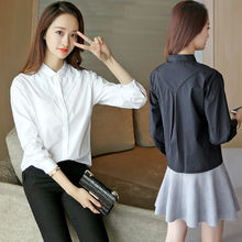 春秋韩版女装OL打底通勤棉衬衫纯色长袖翻领衬衣女白衬衫职业装范