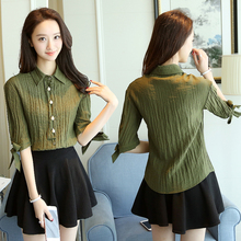 韩范女士七分袖衬衫外套简约休闲白衬衣纯棉百搭短款上衣ol职业装