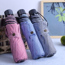 格子三折叠加大加固型雨伞防紫外线黑胶遮太阳伞女防晒晴雨两用伞
