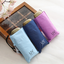 日系超轻小巧五折伞迷你黑胶太阳伞女防晒防紫外线晴雨折叠遮阳伞