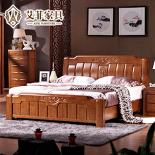艾菲家具 现代中式实木床1.5米双人床1.8m全实木橡木床高箱储物床