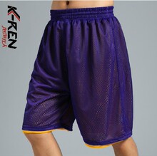 双面网眼短裤 紫黄训练裤 比赛篮球裤 运动裤 超炫街球裤 沙滩裤