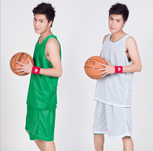 网眼透气比赛队服套装定制 训练背心球衣绿白双面穿篮球服球衣男