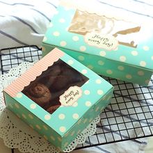 6粒4粒装烘焙包装蓝色波点正方形长方形纸盒蛋糕盒饼干盒雪梅娘