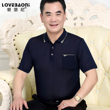 夏季爸爸装中年短袖t恤男中老年体恤男装冰丝T恤夏装薄款宽松上衣