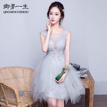晚礼服2017新款夏短款学生优雅伴娘服显瘦宴会性感主持人女连衣裙