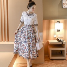 2017民族风棉麻印花吊带连衣裙两件套中长款女宽松大码女装显瘦潮