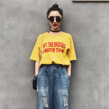 短袖t恤女宽松韩版学生2017夏季蝙蝠衫五分袖字母破洞休闲体恤潮