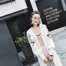 2017春装新款韩版休闲宽松中长款刺绣毛衣开衫女长袖针织衫外套