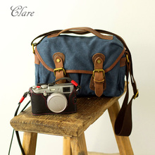 CLARE 复古相机包 单肩摄影包 文艺 帆布 疯马皮 微单 内胆包
