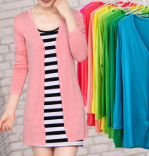 包邮女装韩版夏季莫代尔长袖中长款针织开衫外搭防晒空调衫薄外套