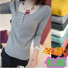 2016秋冬女士纯棉紧身长袖t恤修身加绒加厚打底衫显瘦大码保暖衣