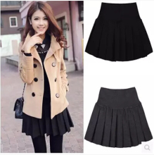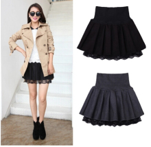 包邮秋冬新品韩版大码短裙高腰毛呢蕾丝百褶裙显瘦半身裙女裙冬裙