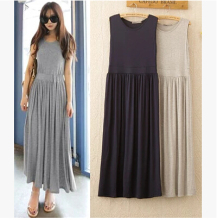 包邮春夏装修身百褶吊带莫代尔长裙连衣裙大摆抽褶修身背心裙女潮