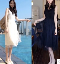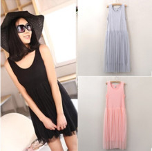 春夏新款莫代尔高腰背心网纱裙孕妇裙 吊带连衣裙打底裙蕾丝裙女