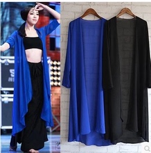 包邮女装夏装新长款雪纺莫代尔拼接防晒开衫空调衫长袖薄款外套