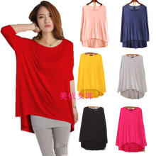 包邮女装春夏欧美风莫代尔不规则下罢长袖打底T恤宽松大码蝙蝠衫