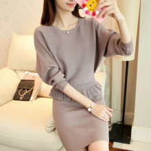秋季针织套装女时尚两件套包臀裙女装蝙蝠毛衣外套2016新款潮秋款