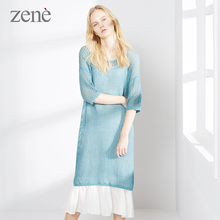 ZENE夏季纯色无袖宽松棉麻连衣裙夏复古文艺范亚麻长裙女