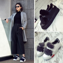 冬季新品夹棉加绒百搭休闲女鞋子兔毛魔术贴厚底防滑保暖学生板鞋