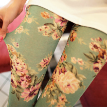 JUJU韩国代购进口 17春夏款田园大花朵薄透纱质织九分打底裤女/特