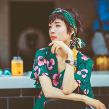 美轮美奂植物花卉 复古水彩花色印花 甜美褶皱荷叶边真丝连衣裙