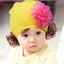女童假发帽子春夏纯棉宝宝帽婴儿帽 小女孩帽 6个月1/2/3个月新款