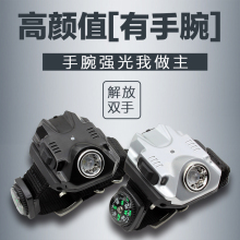 户外强光手电筒手腕灯夜骑行指南针带手表功能充电腕戴灯登山夜跑