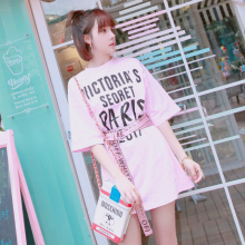 夏装潮牌短袖字母印花T恤女宽松学生中长款休闲显瘦包臀t恤连衣裙