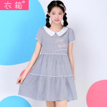 夏装韩版女大童连衣裙夏季条纹娃娃领公主裙12-13-15岁女孩女童装