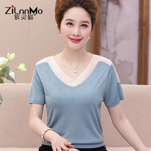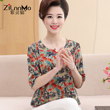 中年妈妈夏装新款大码短袖雪纺T恤40-50岁中老年奶奶女上衣母亲节