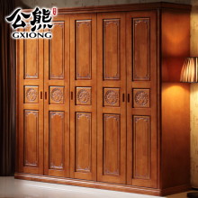 新古典雕花实木衣柜 三四五六门组装卧室收纳拉门衣橱木质衣服柜