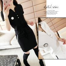 女装春装新款韩版百搭修身V领短袖连衣裙时尚纯色打底裙短裙
