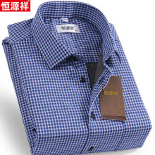 恒源祥男士长袖衬衫父亲男装小方格子中年人爸爸装男商务休闲衬衣