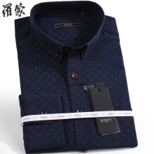 罗蒙磨毛格子衬衫春季新款纯棉印花青中年男士长袖衬衣修身爸爸装