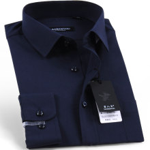 老人头男士长袖衬衫中老年父亲男装春季休闲上衣深蓝色男商务衬衣