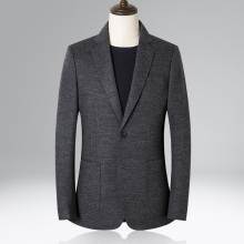 umber秋冬新款男士休闲英伦羊毛针织小西装双开叉休闲西服外套男
