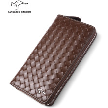 袋鼠正品 编织纹男士手拿包商务男真皮手包 时尚纯牛皮男包长款包